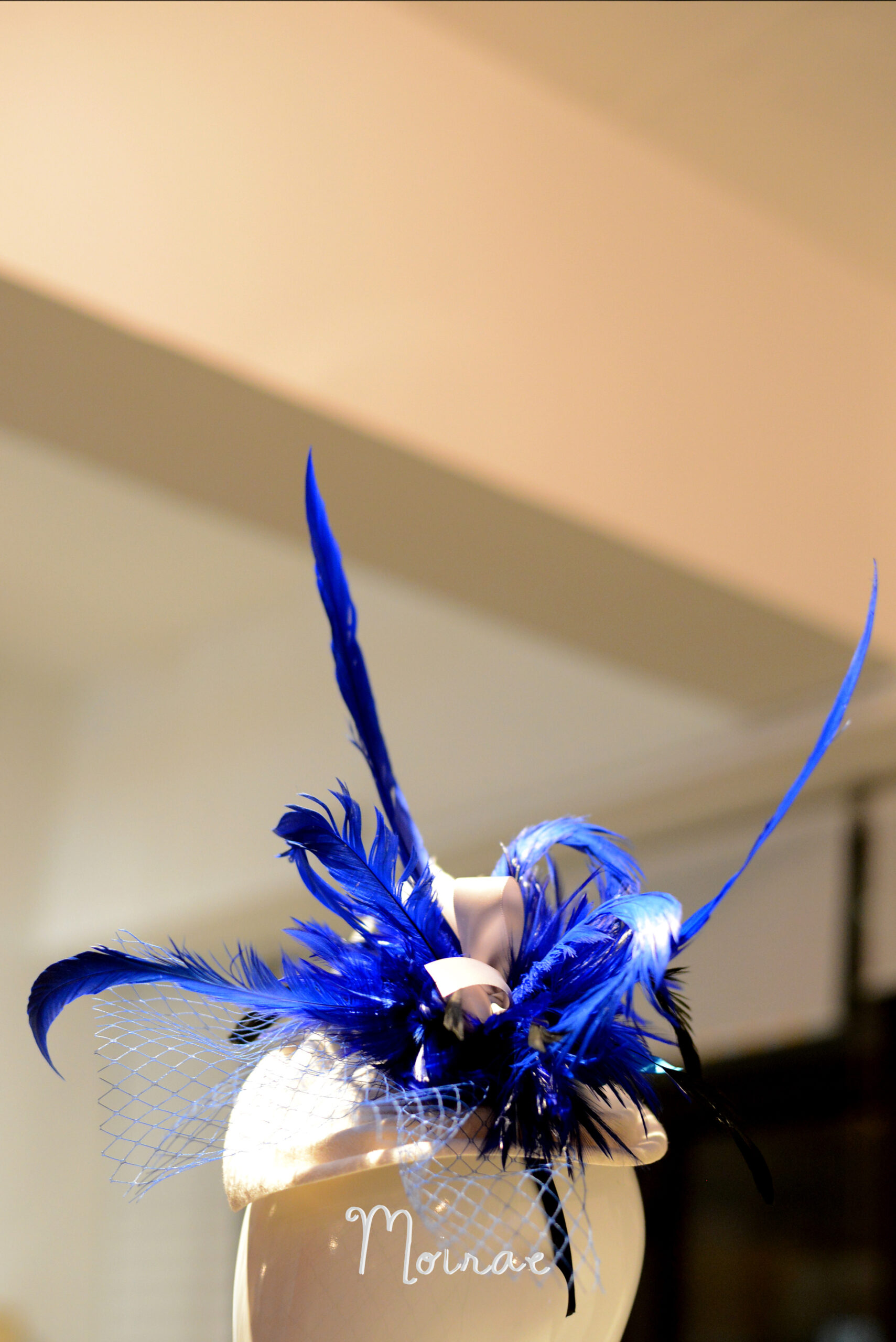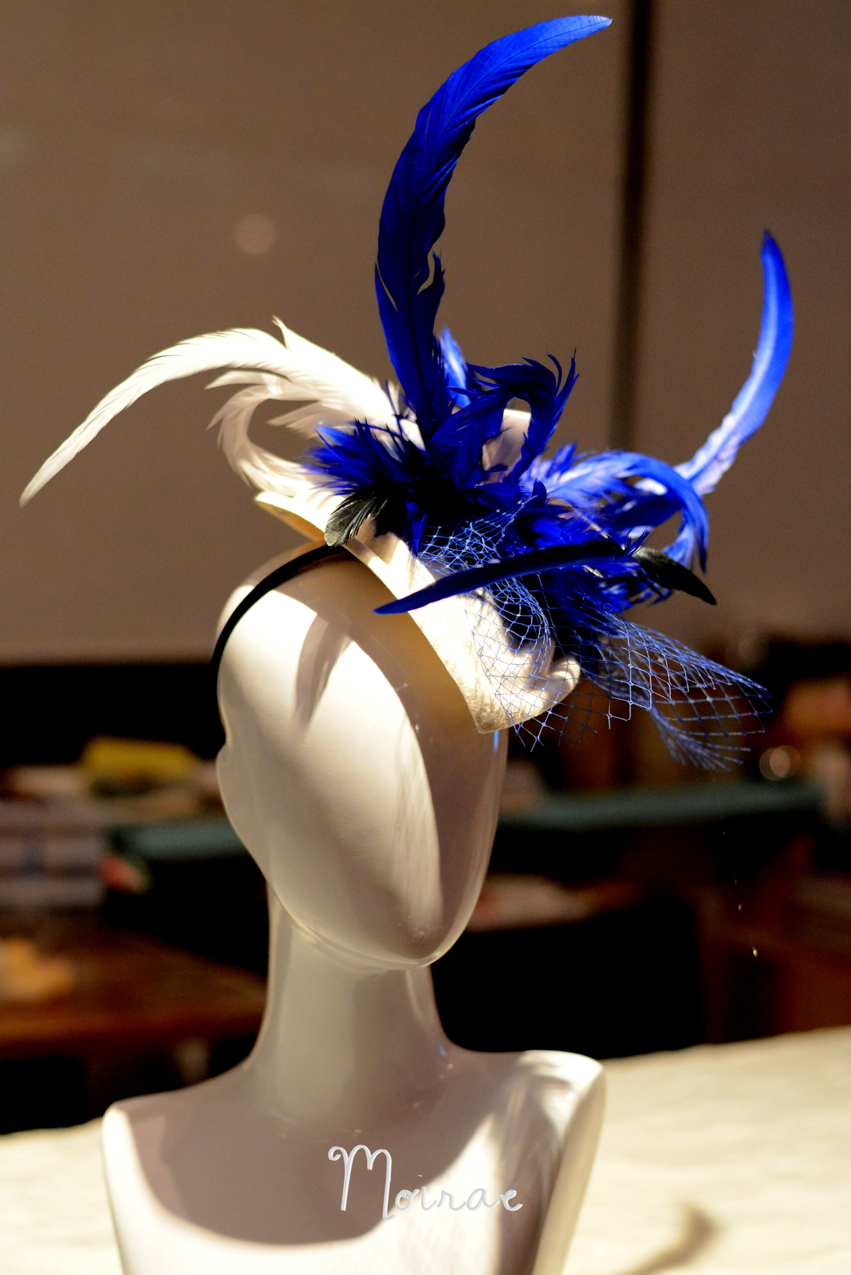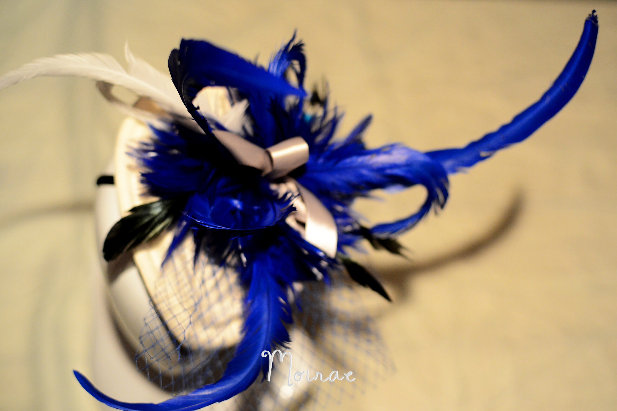 Royal Blue Feather Spines with lace Veiling